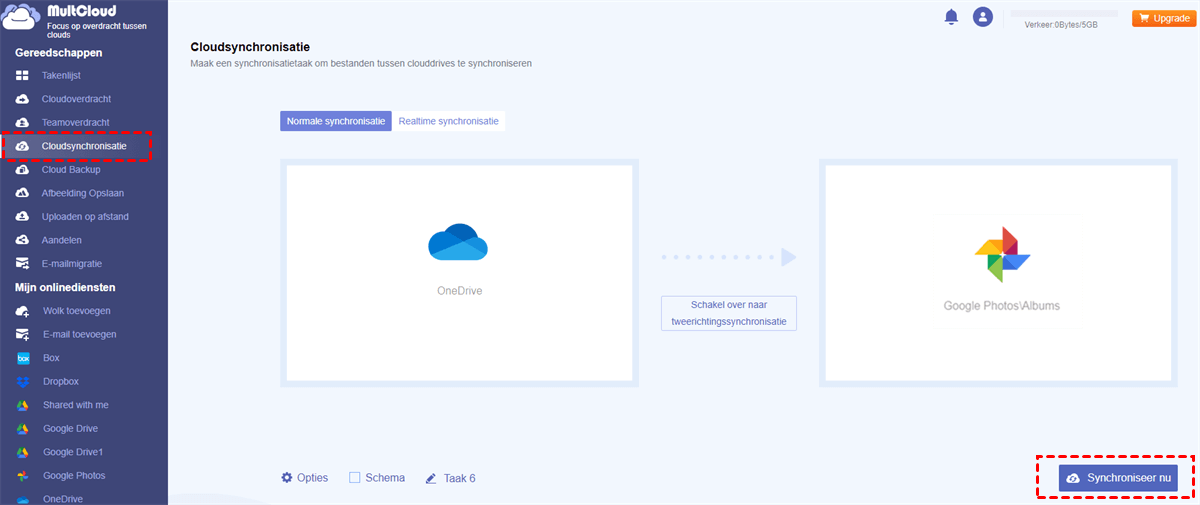 Stap 3. Synchroniseer OneDrive met Google Photos via "Cloudsynchronisatie"