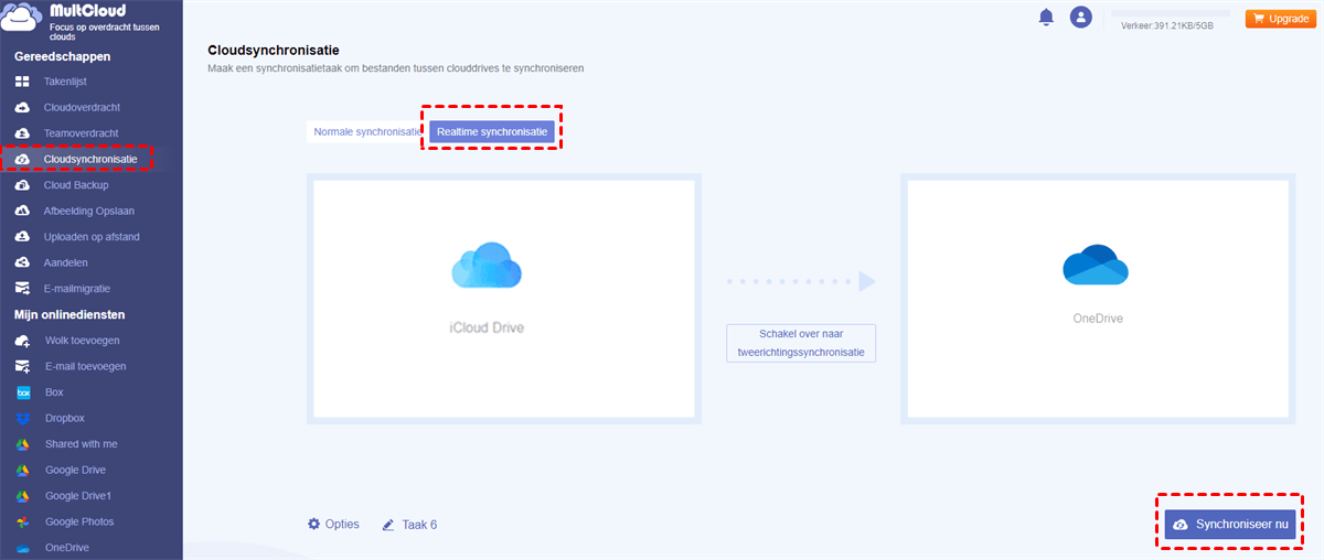 Nu kun je de onderstaande stappen volgen om te leren hoe je iCloud Drive kunt synchroniseren met OneDrive via MultCloud.