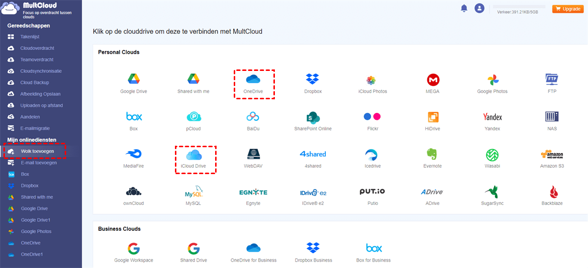 Nu kun je de onderstaande stappen volgen om te leren hoe je via MultCloud van OneDrive naar iCloud kunt overstappen.