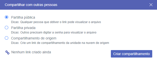 - Direto: Compartilhamento de arquivos em nuvem via modo de origem, público ou privado.