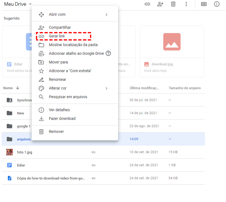Maneira 4: Como compartilhar pasta no Google Drive por "Gerar link"