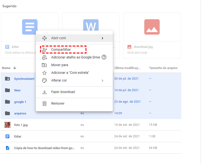 Algumas pessoas devem estar se perguntando, o que devo fazer se eu quiser compartilhar várias pastas no Google Drive? Os passos são semelhantes aos do método 1. Vamos ver como compartilhar pasta no Google Drive.