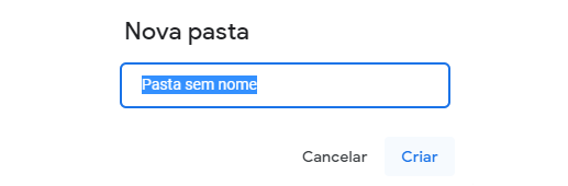 Passo 3: Vá para Google Drive e clique em “Nova Pasta” no lado superior da página principal. Digite o nome da pasta.