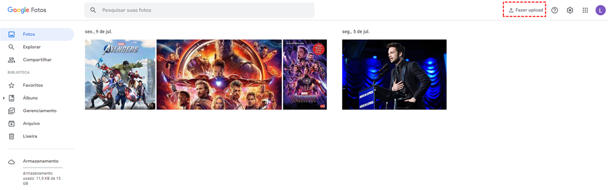 Maneira 1: Como passar fotos do pc para Google Fotos com web