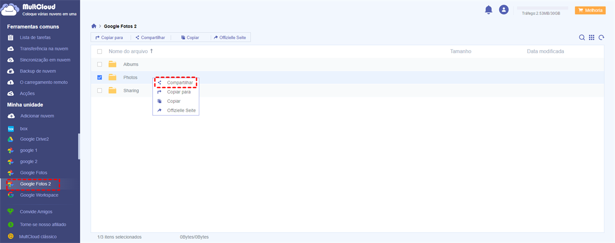 Este método é adequado para alguns usuários que desejam transferir dados nuvem para a conta de membro da família. Se você também tem esta necessidade, então a função "Compartilhar" em MultCloud pode ajudá-lo.