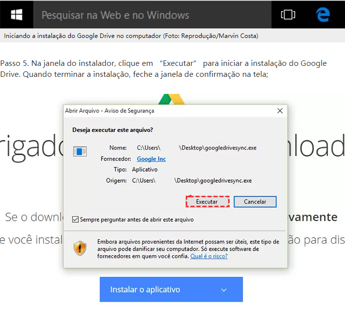 Basta executar novamente o aplicativo como administrador. Clique com o botão direito no aplicativo Google Drive no menu Iniciar > Mais > Executar como administrador. Ou use o privilégio de administrador ao instalar o Google Drive.
