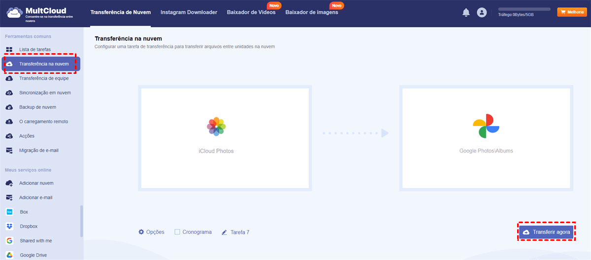Transferir Fotos do iCloud para o Google Photos via Transferência na nuvem