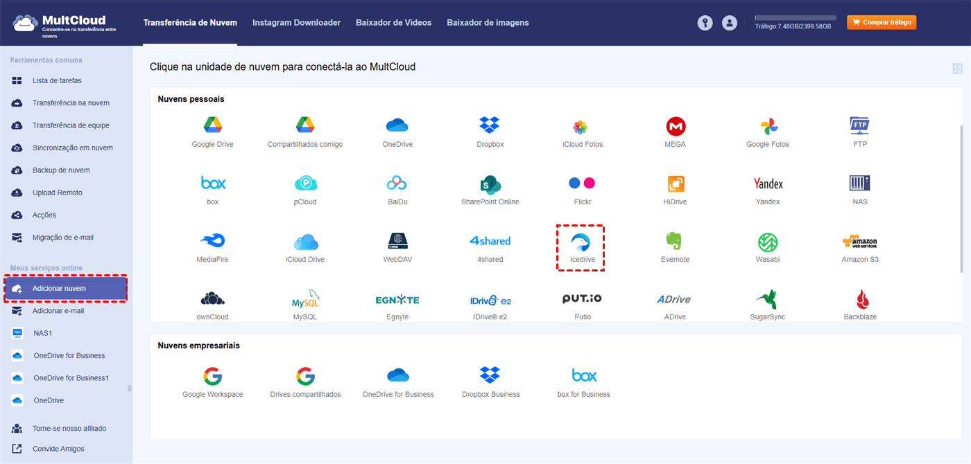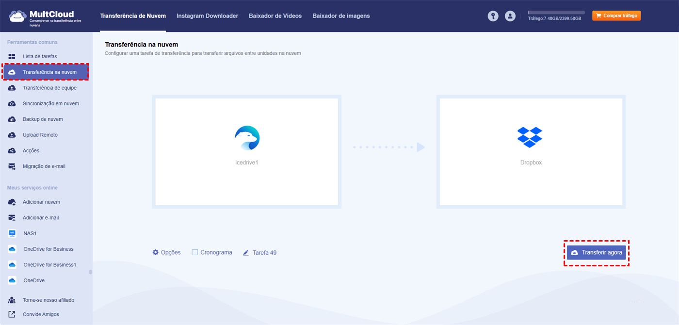 Portanto, após aprender acima sobre Icedrive vs Dropbox e desejar migrar arquivos do Icedrive para o Dropbox, você pode atingir facilmente o objetivo por meio do MultCloud: