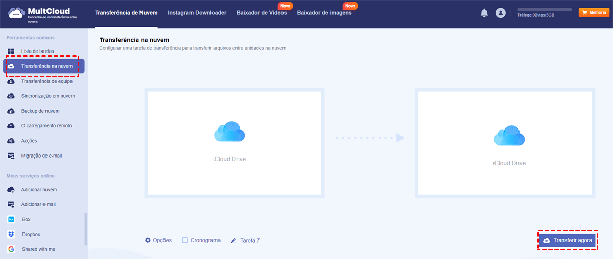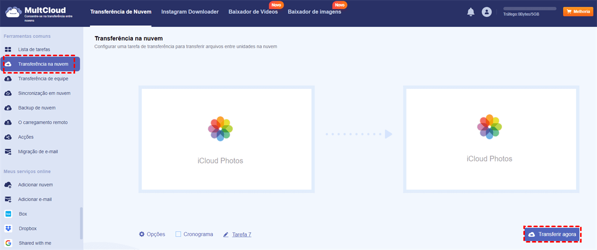 Se você achar o método de download e upload muito trabalhoso, especialmente quando há muitas fotos na antiga conta do iCloud, você pode experimentar uma ferramenta profissional de transferência de nuvem para nuvem - MultCloud.