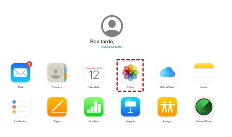 Passo 3: Acesse o iCloud na web e selecione o ícone “Fotos”.