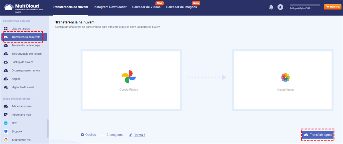 - Transferência na nuvem: Transferir arquivos de uma nuvem para outra sem precisar fazer o download manual.
