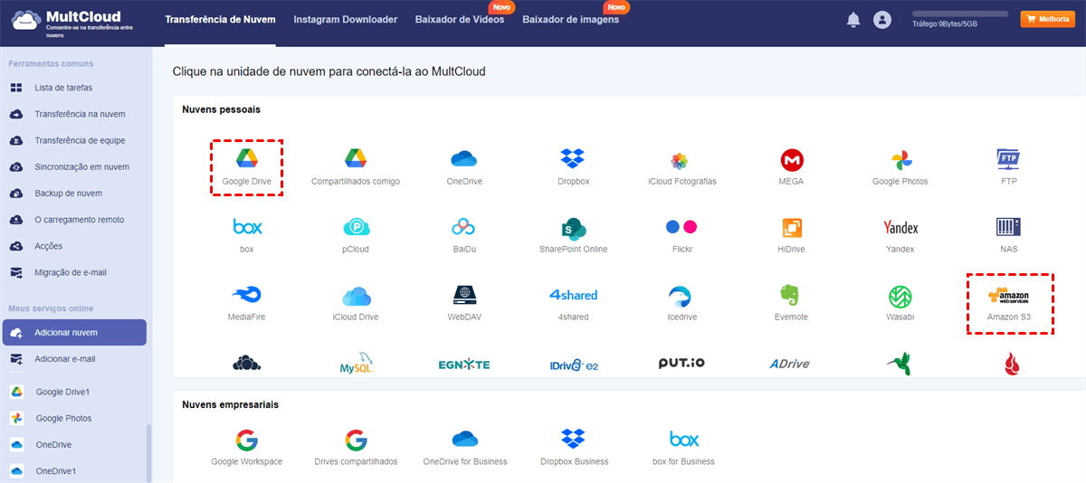 Forma 2. Transferir Automaticamente do S3 para o Google Drive pelo MultCloud