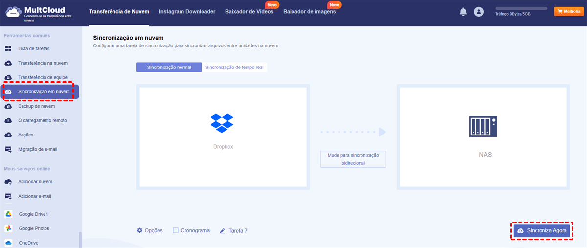 Maneira 1. Sincronizar o Dropbox com o Synology NAS em Tempo Real com o MultCloud