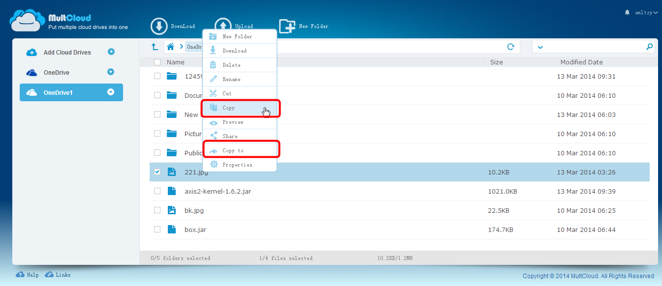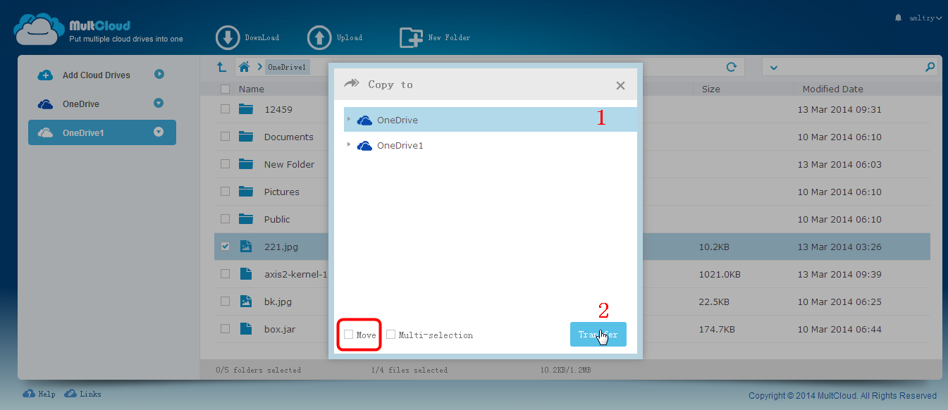Nesta parte, há 4 formas grátis para transferir arquivos entre contas de OneDrive eficientemente com uma ferramente on-line, MuitCloud. Vamos ver as maneiras.