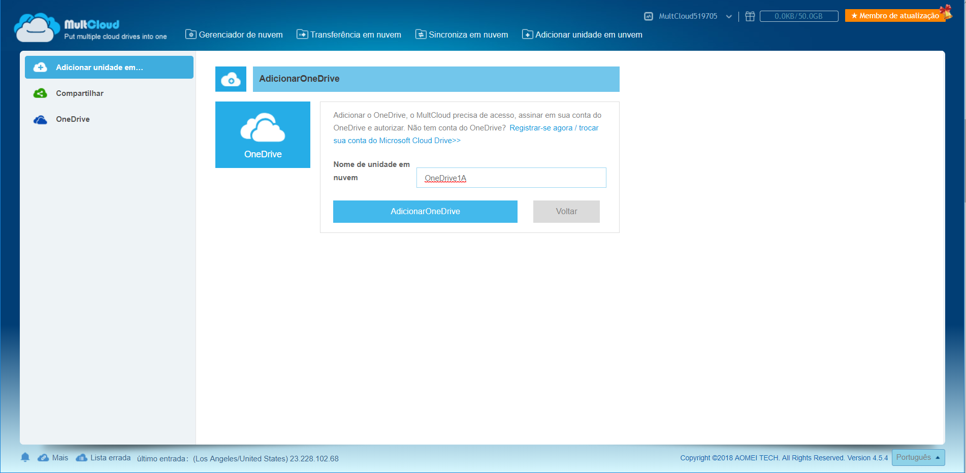 - Se seu amigo optar por salvar os dados diretamente sua conta de OneDrive, ele tem que ter conta de MultCloud.