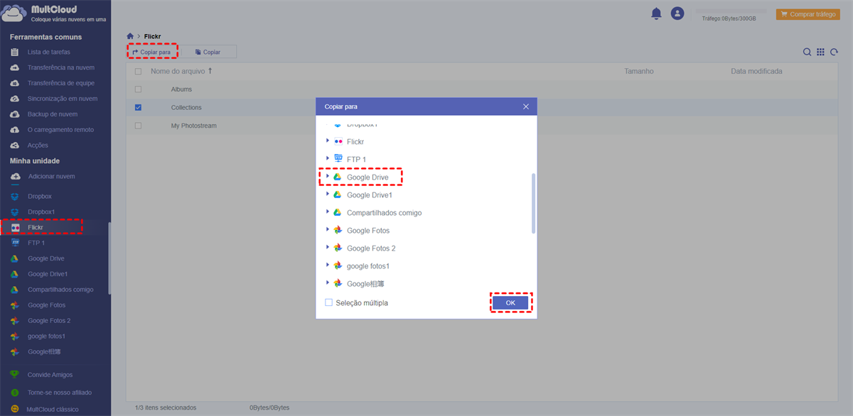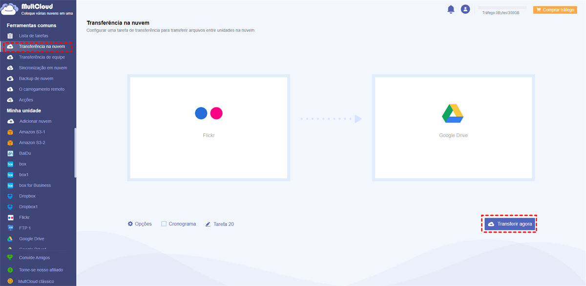 Método 1: Transferir fotos do Flickr para Google Drive via "Transferência na nuvem"
