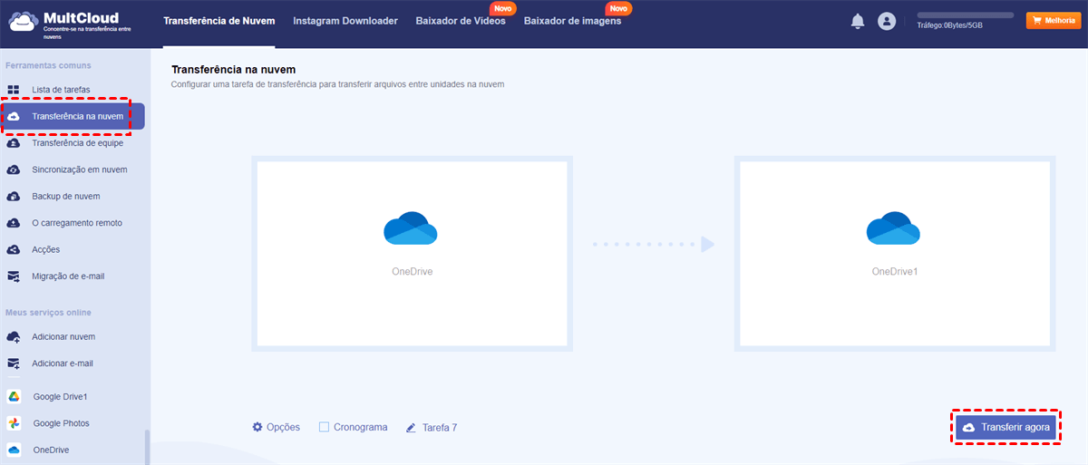 Aqui, você pode transferir facilmente de uma conta OneDrive para outra utilizando o recurso "Transferência na nuvem". Dê uma olhada mais de perto em como funciona.