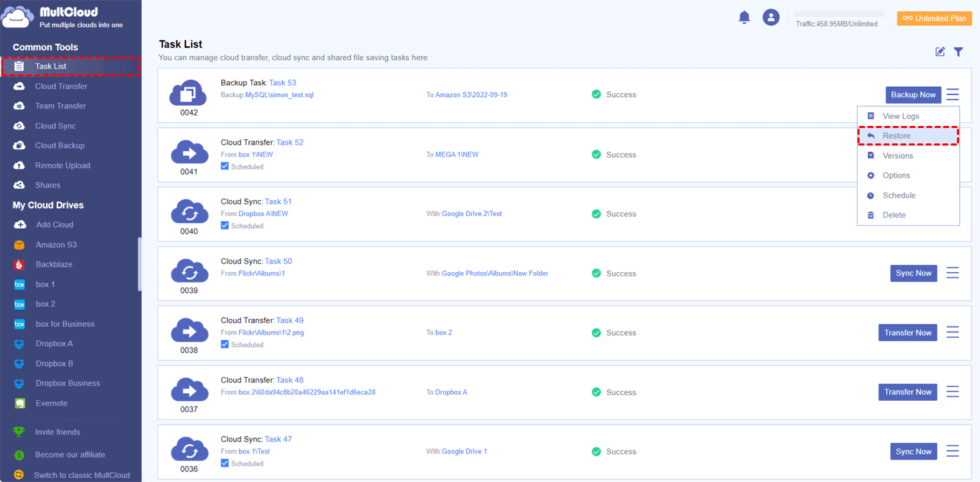 MultCloud not only helps you move MySQL backup to Amazon S3 in the easiest way but also offers you a simple way to restore MySQL database from S3. Just check the following steps to make it quickly.