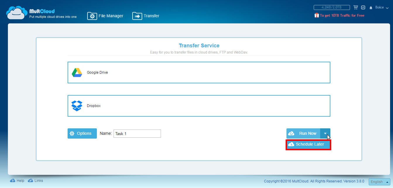 - Under the "Schedule" option, you can set a schedule to back up Google Drive files to Dropbox, such as daily, weekly or monthly backup files.