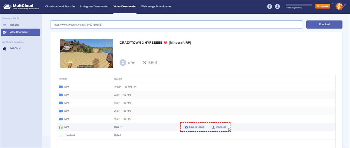 Therefore, MultCloud can be your best Twitch Clip audio downloader.