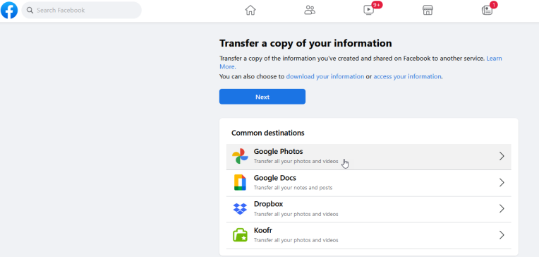 This is the easiest, fastest way. Facebook actually has a tool that lets you transfer your photos directly to Google Photos. No downloads, no USB sticks, just a few clicks.