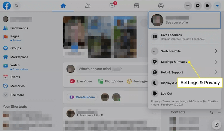Click the dropdown arrow in the top right corner, then hit Settings & Privacy > Settings.