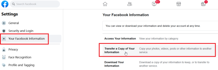 Step 4: Use the "Transfer a Copy of Your Information" Tool
