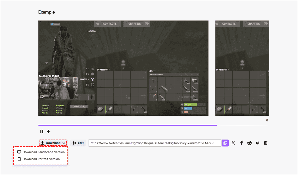 Or, you can copy the Twitch Clip link or share it to other platforms, etc.