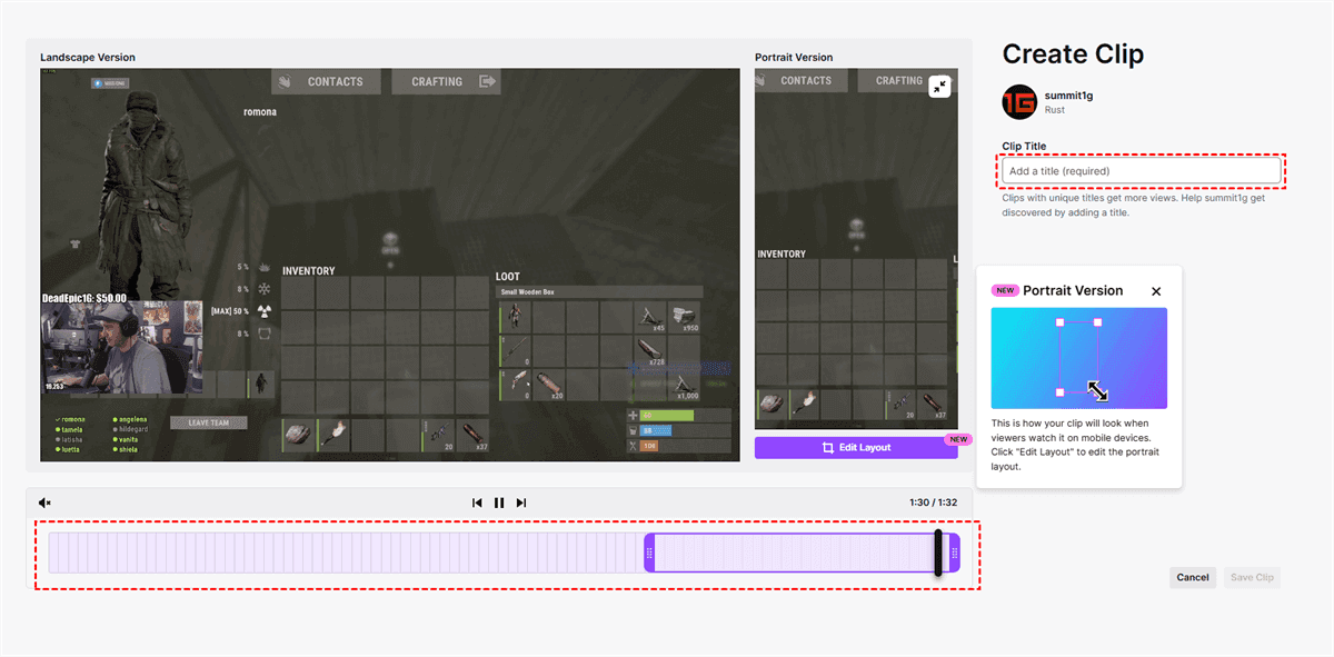 4. Now, hit Save Clip to create a Twitch clip, and it will be published.