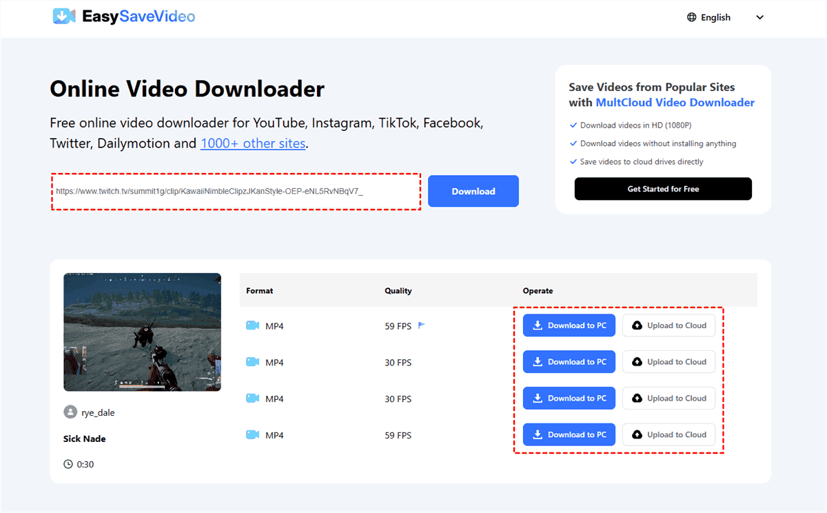 Fortunately, here comes the best Twitch Clip downloader named EasySaveVideo to help. This tool is designed by MultCloud. Why itâs the best tool for you to download Twitch Clips, here are the advantages: