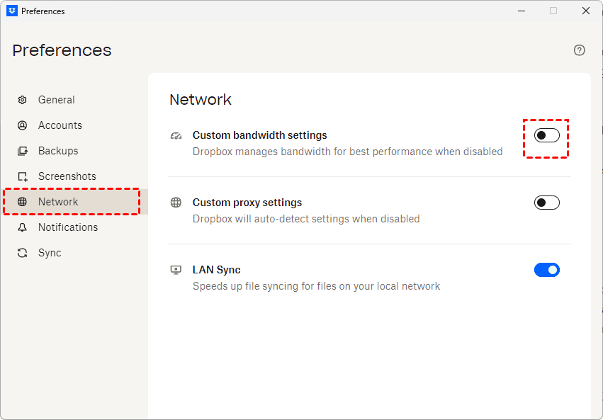 Way 3. Change Dropbox Settings for More Bandwidth
