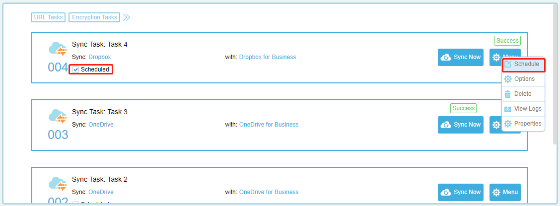 If you want to change the schedule, click the “Menu” option and select “Schedule” also until the current synchronization is completed.