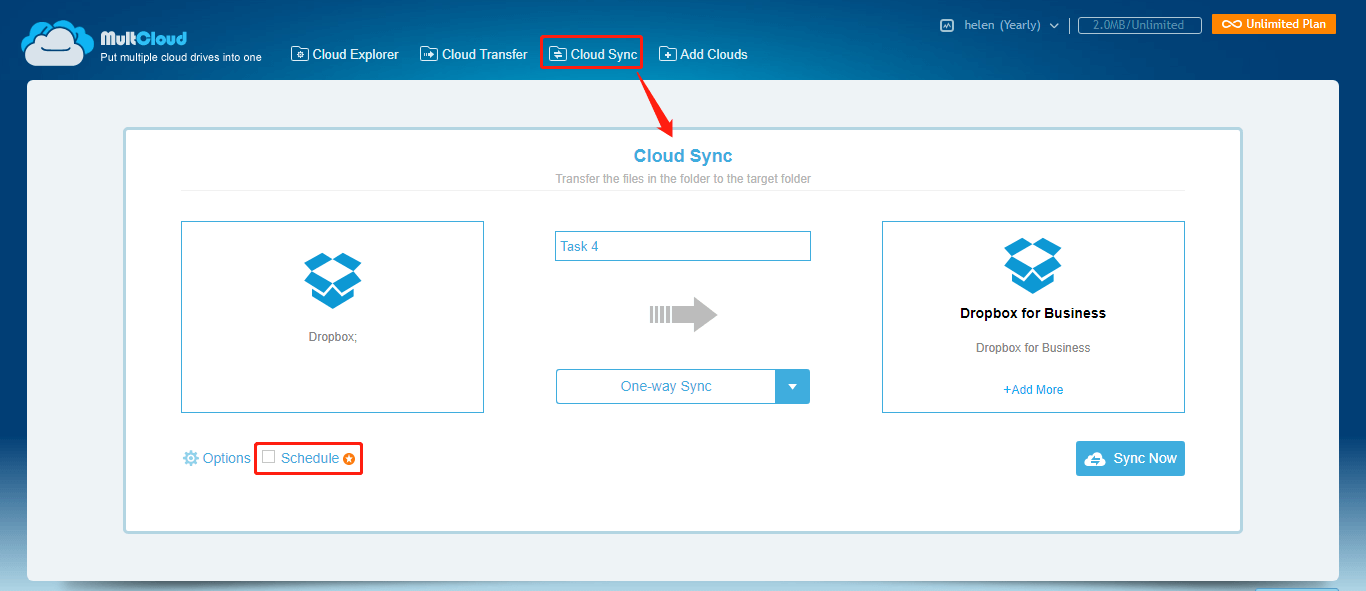 When you have put all your Dropbox accounts or other cloud accounts into MultCloud, next, you can schedule Dropbox to sync as you like.