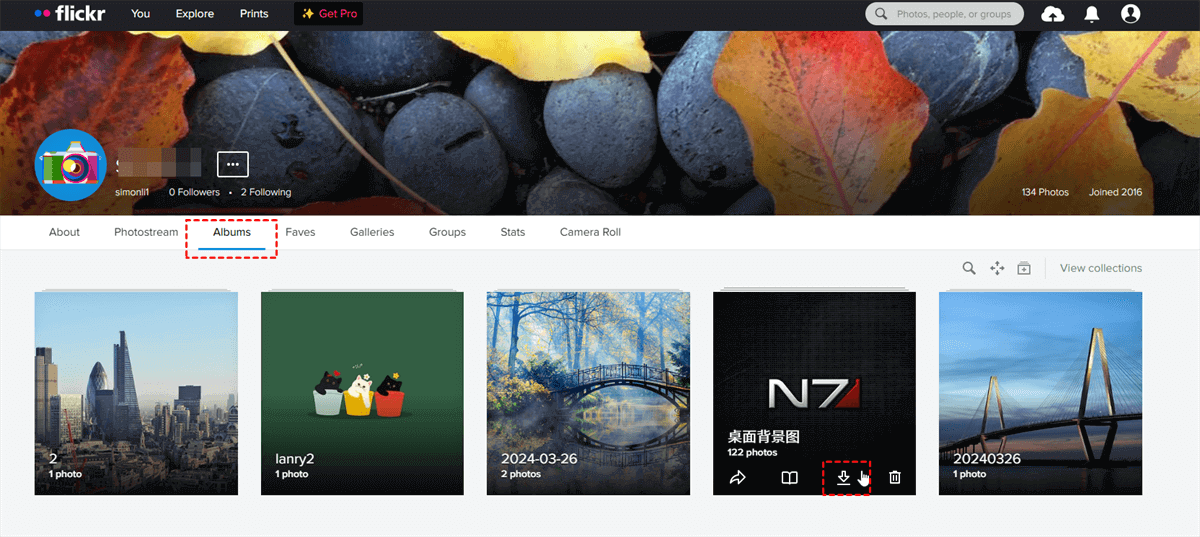 As you know, Flickr only allows you to download 500 photos every time, including the Flickr album download, so if you have more than 500 photos and videos, you can organize these photos by putting each 500 photos on each album, then downloading Flickr albums one by one. Here is how it works: