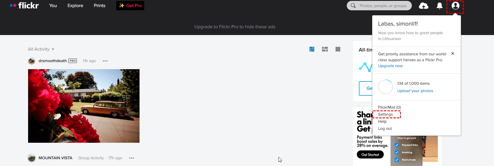 1. Please log in to your Flickr account, and tap your Flickr profile image on the top right.