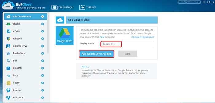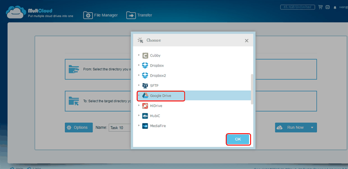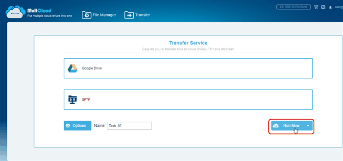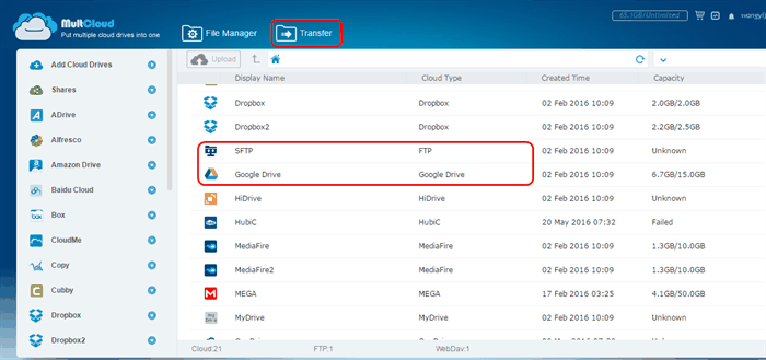 Here we will take how to transfer data from FTP to Google Drive as an example to show you how to do FTP access to Google Drive free with one of MultCloud’s functions, Cloud Transfer.