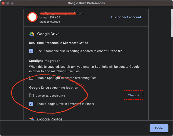 On modern macOS (Ventura/Sonoma+), Google Drive typically restricts folder location changes because it relies on Apple's File Provider API, which manages the folder at ~/Library/CloudStorage. To move it, you'll need to switch from streaming to mirroring in your settings, disconnect your account, and then sign back in to select a non-standard location—such as an external drive.