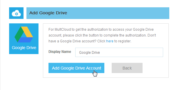 Step 2: Click “Add Cloud” and choose the Google Drive (Google Workspace) icon to follow the pop-up window to add your Google Drive to MultCloud. Then add your personal Dropbox or Dropbox Business account to MultCloud as well.