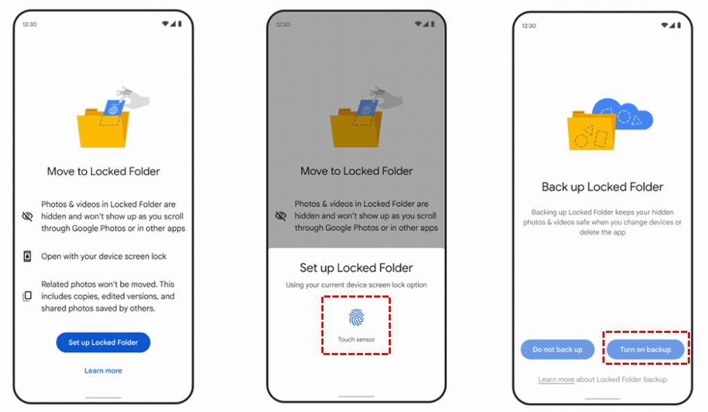 Step 3: Hit the Set up Locked Folder option, and you can also opt to enable backup for the Locked Folder during this step.