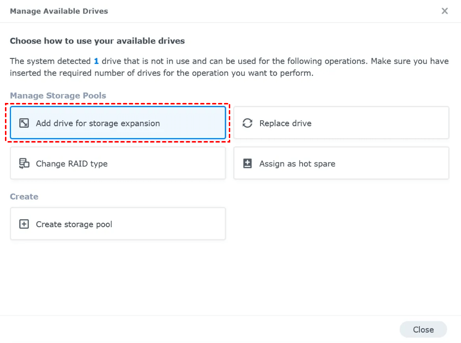 After looking through the preparations, you must be ready to add a drive to Synology NAS, here are the steps on how to add a new drive to Synology NAS.