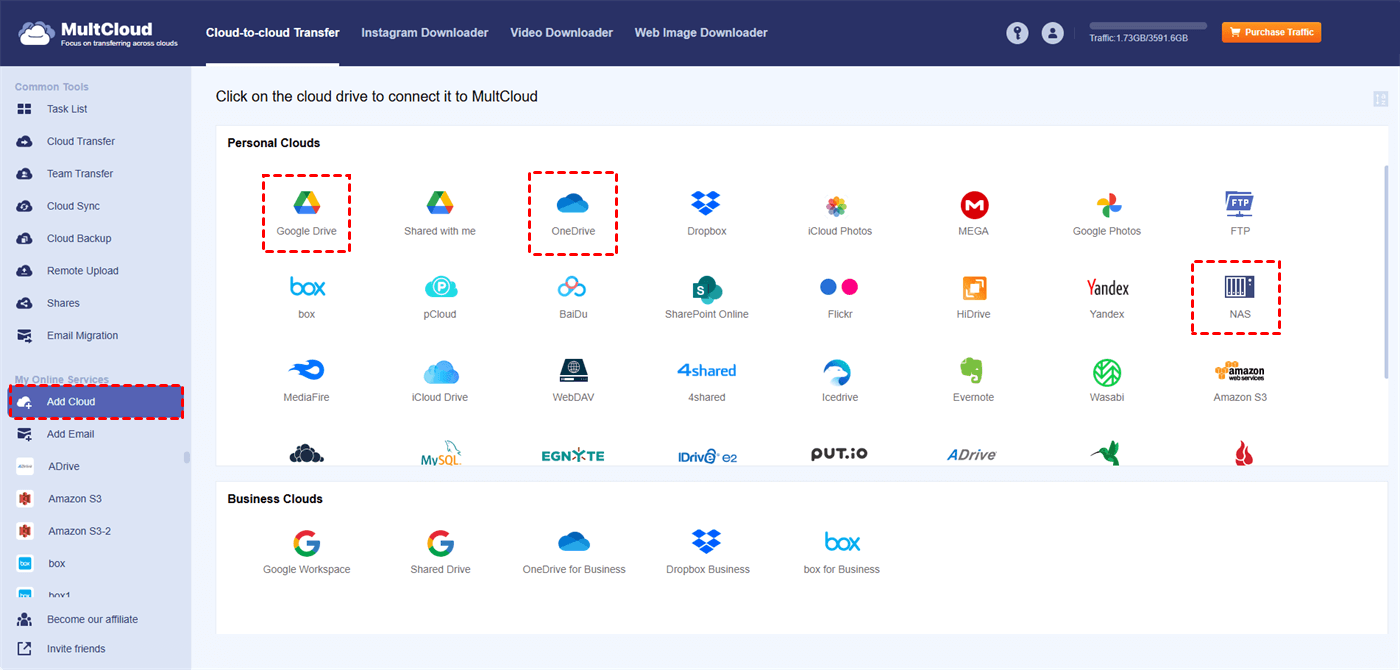 After creating and setting up a NAS drive, you can gather all your files in this drive for better organization. If you also use other cloud storage, such as Google Drive, Dropbox, OneDrive, or iCloud Drive, you can migrate files from them to NAS. How to quickly finish the cloud file migration task? Use MultCloud!