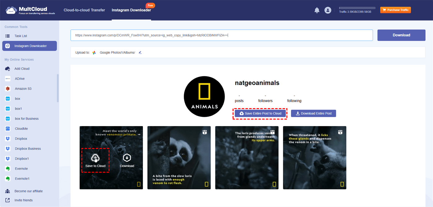 If you do not want to download an extra desktop app, you can try MultCloud. It is a free web app and you can use it on your PC or Mac to download Instagram videos. The basic operations of using MultCloud is copying the video link and paste it into MultCloud. Then, you can choose to save the video to a local place or a cloud drive.