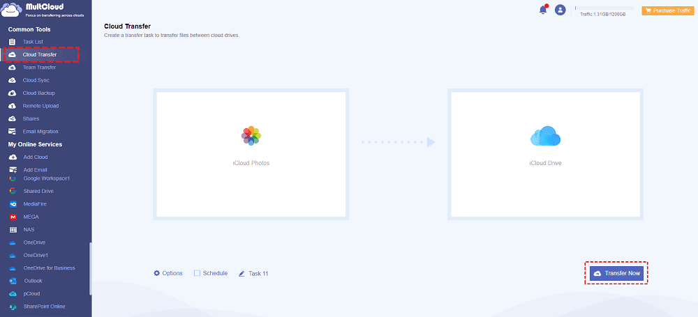 To quickly move photos from iCloud Photos to iCloud Drive, it’s strongly recommended to take advantage of the powerful web-based multi-cloud storage manager - MultCloud. Why? Because you can get the following useful operations for iCloud: