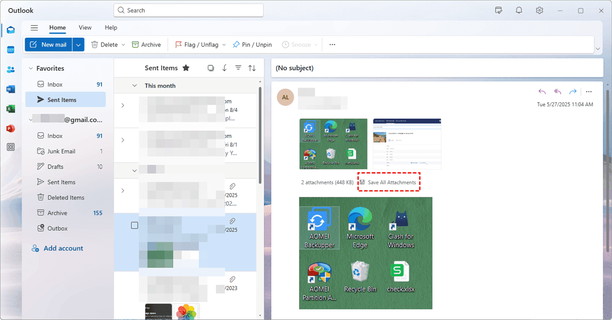 5. Repeat the above steps to download all attachments from all Outlook emails.