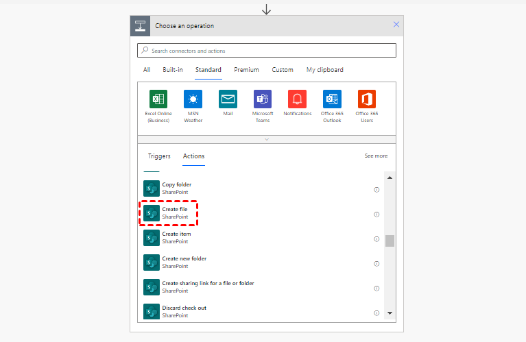 Step 1. Log in to Power Automate with one of your SharePoint accounts and search for “SharePoint”.