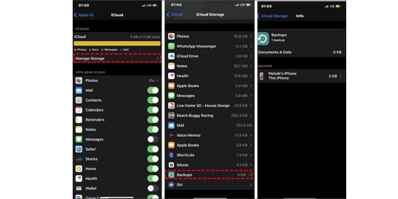iCloud Backup is a reliable and useful service that helps you back up local files and data, such as device settings, contracts, messages, photos, etc. If your iPhone is stolen, you can get the data back effortlessly on your new device from iCloud Backup. If you only have 5GB of free space, things become tougher, and you might want to delete backups to free up space. Meanwhile, there are many other disadvantages: