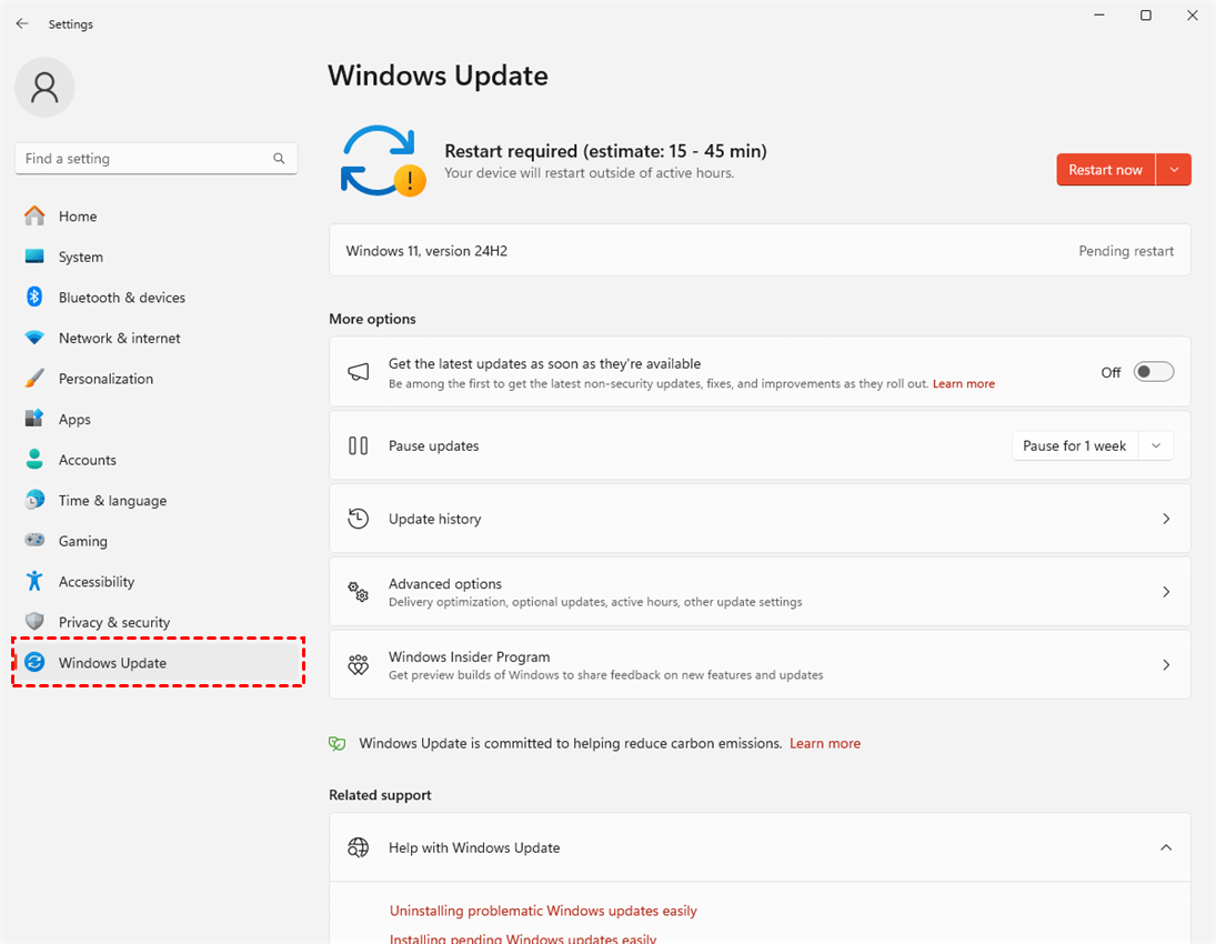 Step 3. If there is any update, click "Restart Now" or "Schedule start" to install the new version of Windows.