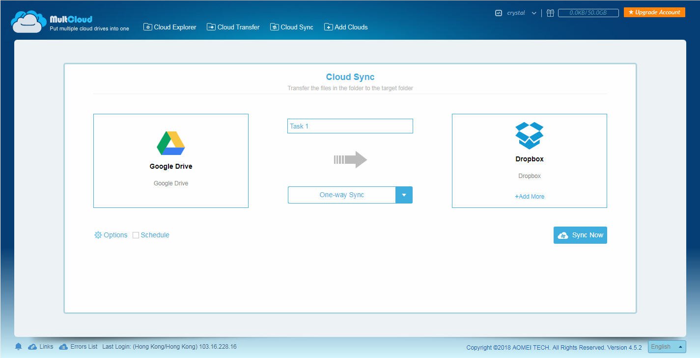 - One-key Move: Quick data transfer, sync, and backup among clouds.