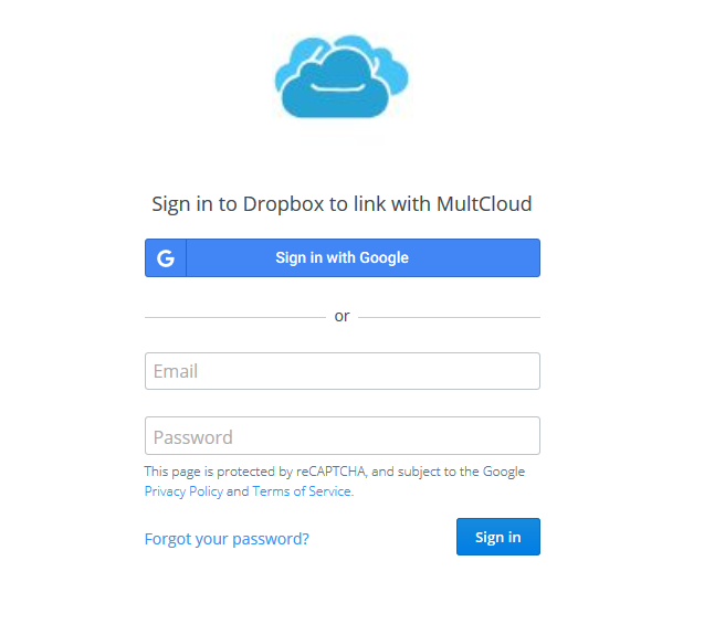 Step 2: Click “Add Cloud” in the top menu and select “Dropbox” from the right cloud drive list, then follow the pop-up window to allow MultCloud to access your Dropbox account.