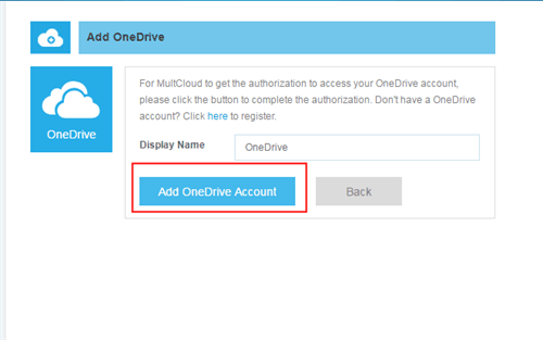 Click "Add Cloud" to add OneDrive from the listed cloud drives below to MultCloud. Authorize MultCloud to access your OneDrive account.